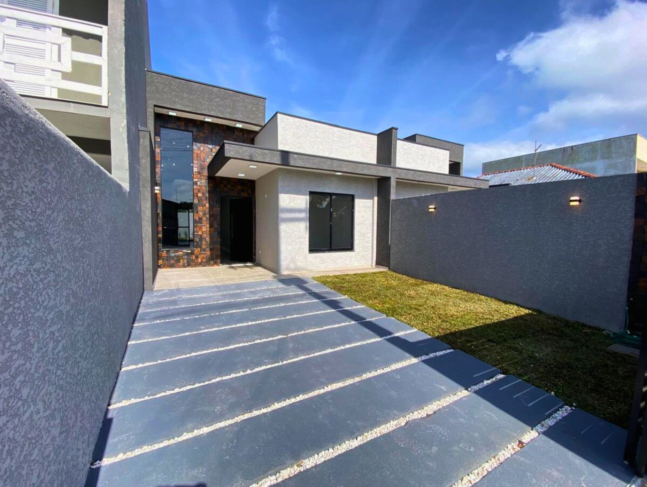 Casa entregue e pronta para morar, com acabamento cuidadoso e área externa preparada para momentos de confraternização.