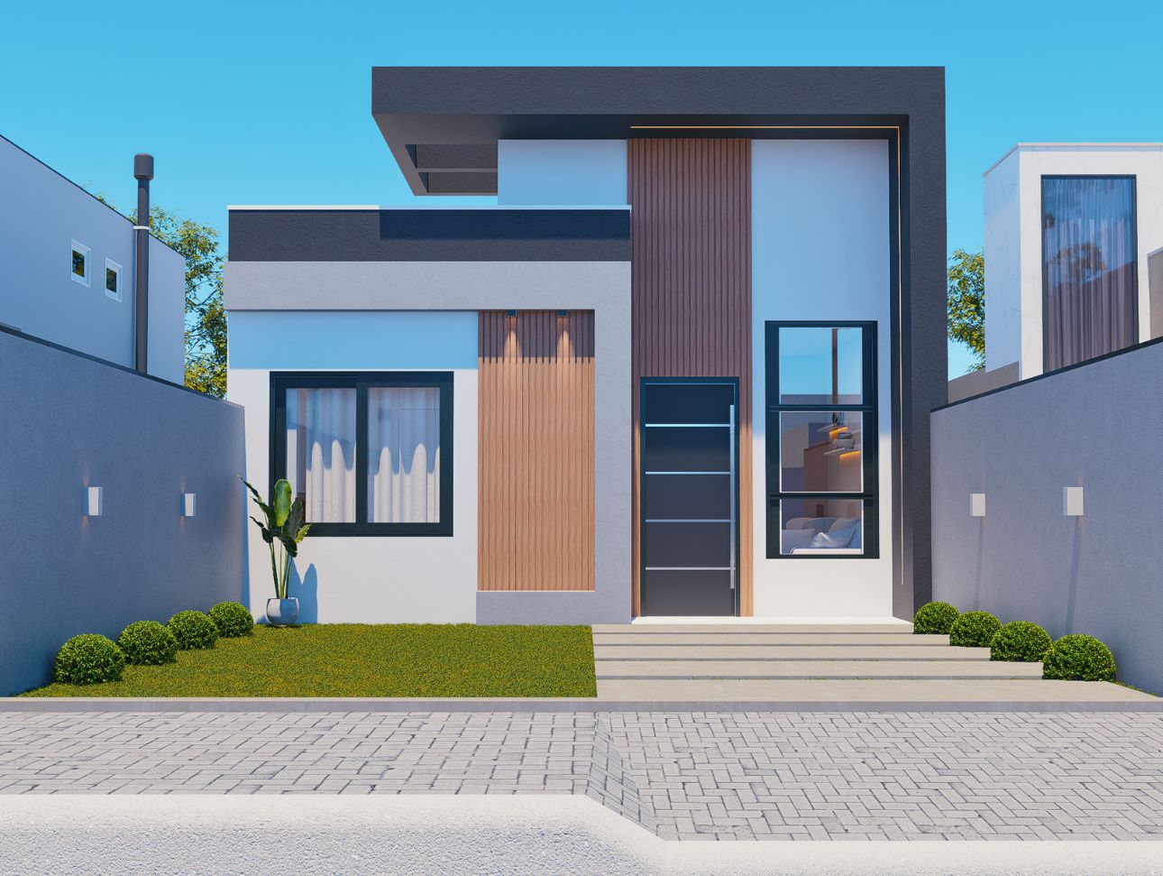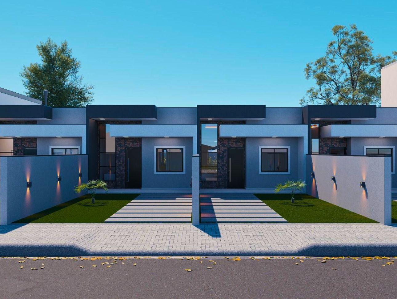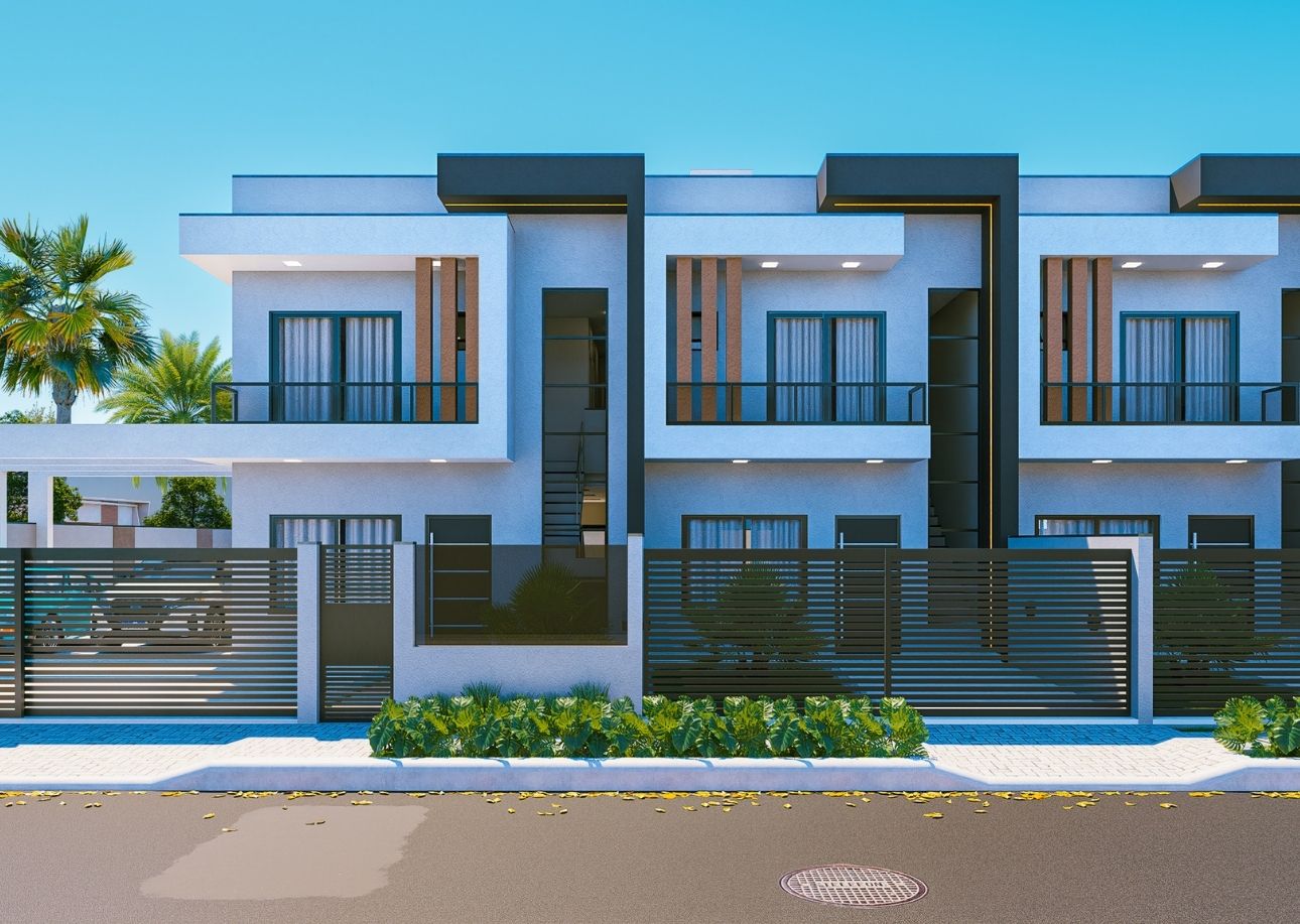 Conjunto com três sobrados de alto padrão, projetados com ambientes integrados e área gourmet completa.